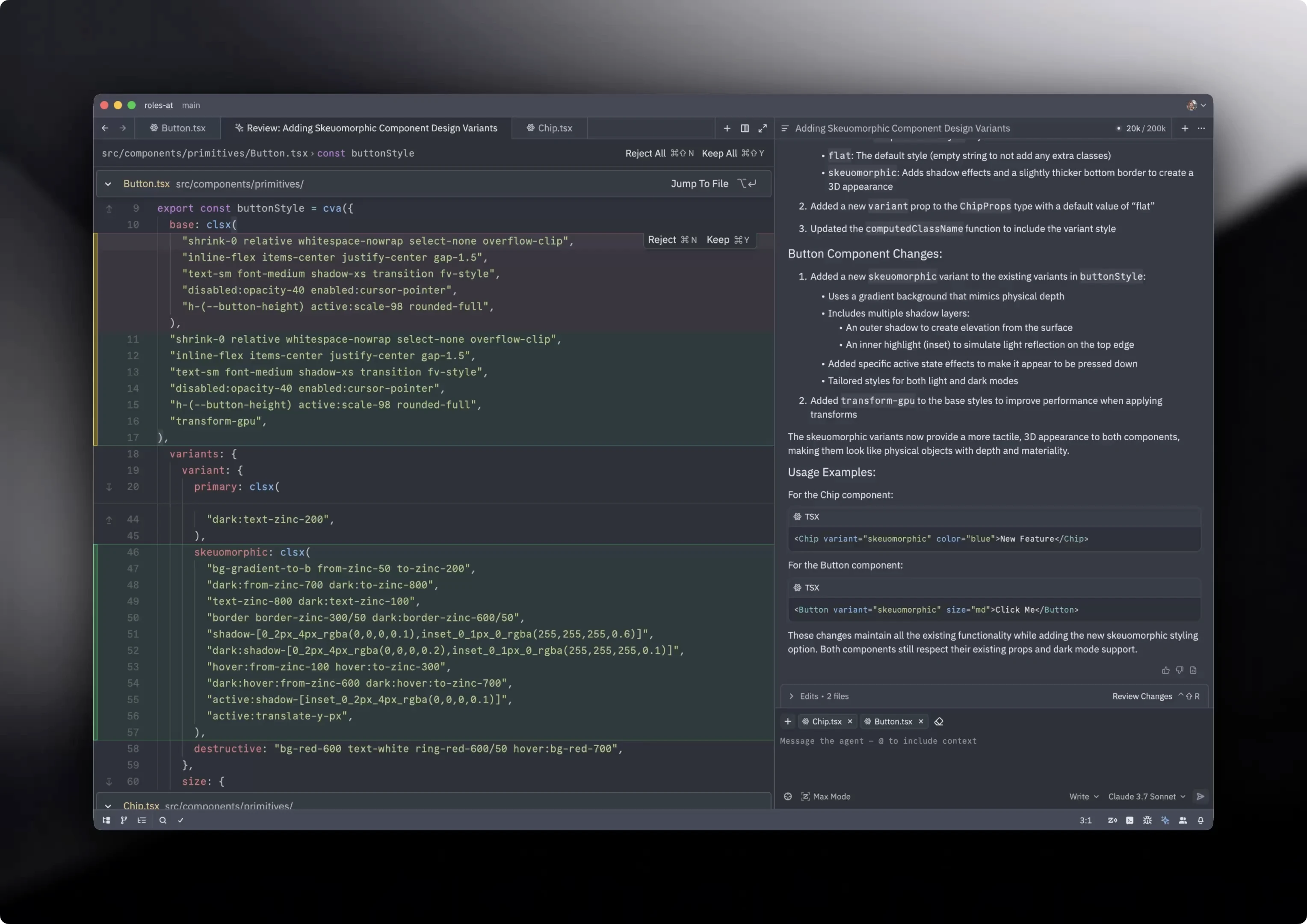 Chat with the agent to explore and modify source code from across your project.