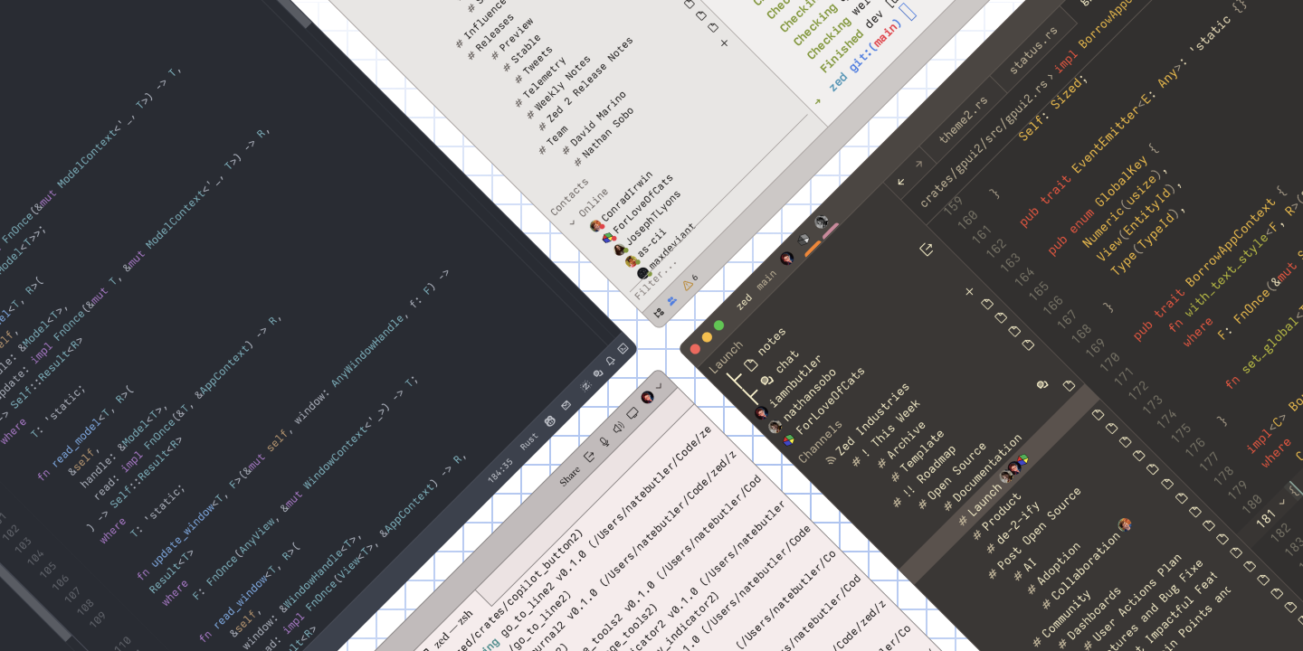 We're welcoming 2024 by shipping a fundamentally new version of Zed to the preview channel. Over the past several weeks, we've completely rewritten Zed's UI framework to incorporate everything we've learned over the past two years building UI in Rust. GPUI 2's ergonomic improvements will make contributing to Zed more fun and help us ship faster. We've also laid down a solid foundation for upcoming improvements such as multi-platform support and animation.