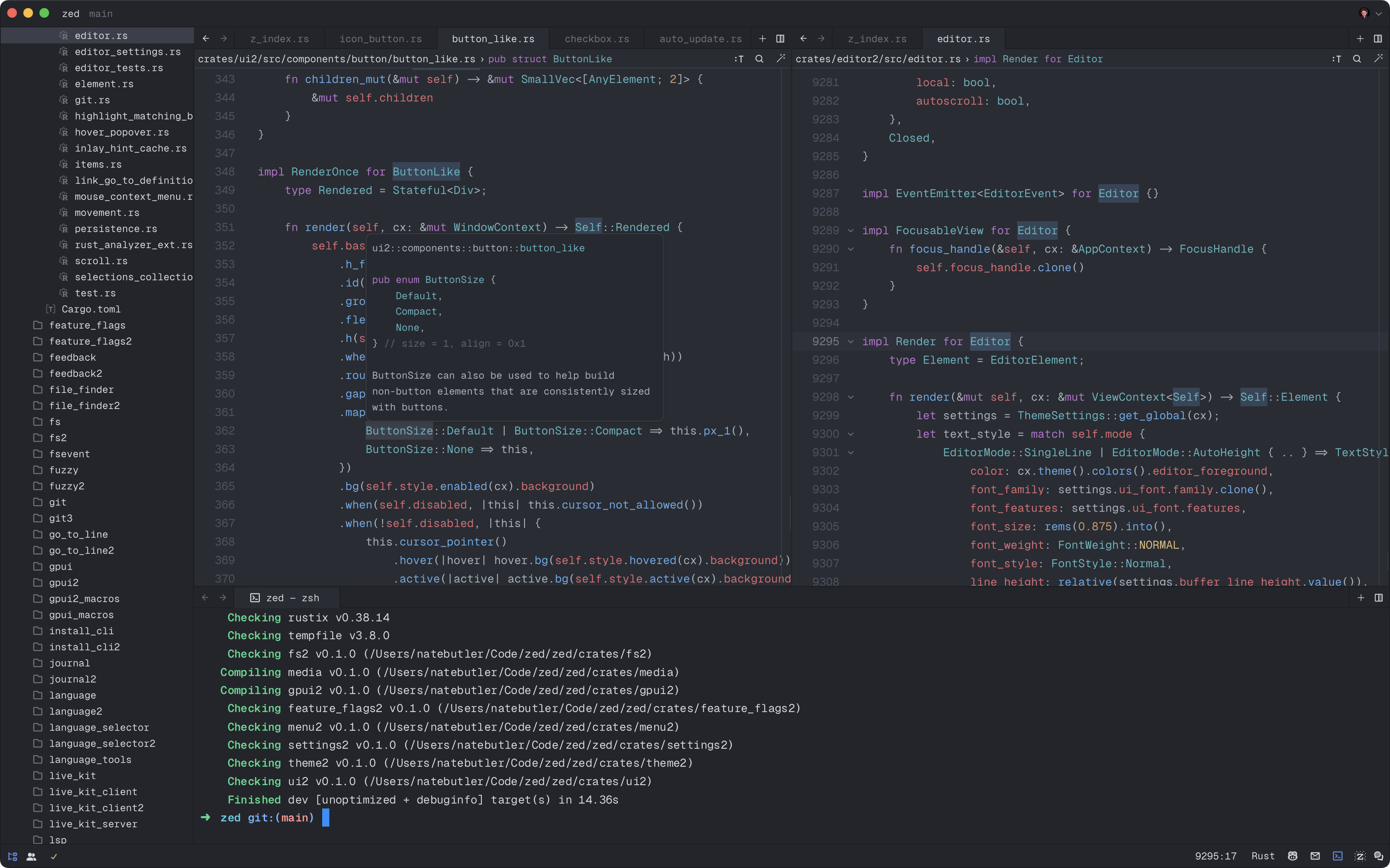 As we close in on the end of the year, we're all looking forward to enjoying the benefits of Zed's shiny new foundation with GPUI 2. It's been fun watching all the features come back online in the nightly build and starting to use the new version of Zed as a team. Here's some updates from the trenches...